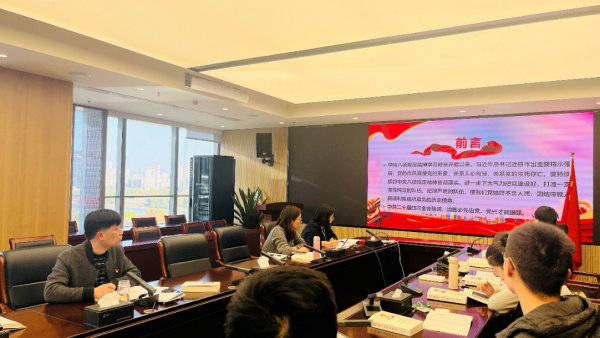 會議伊始,全體黨員集中研學《中共中央關于制定國民經濟和社會發展第十五個五年規劃的建議》,深入學習《習近平談治國理政》中有關教育科技人才事業發展、全過程人民民主的部分內容以及《省環保集團青年干部職工廉潔教育手冊》,在深學細悟中筑牢干事創業、清正廉潔的思想根基。